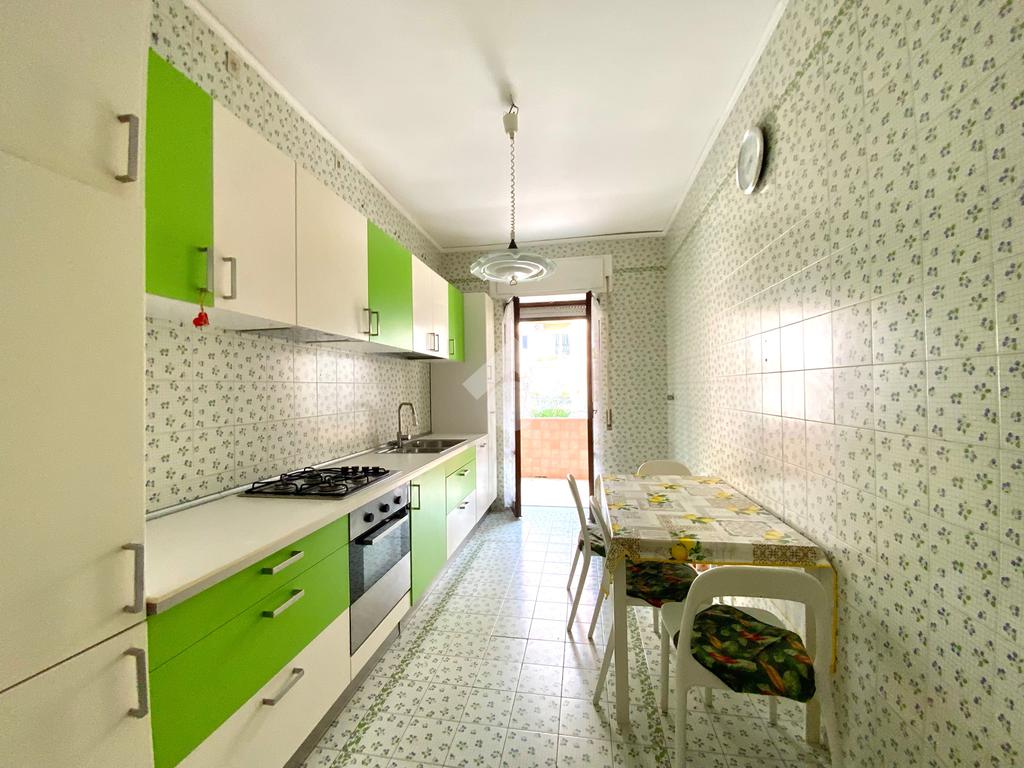 La zona giorno è composta da una cucina abitabile, ambiente accogliente e ben illuminato, con accesso diretto al balcone, perfetto per momenti di relax all’aperto