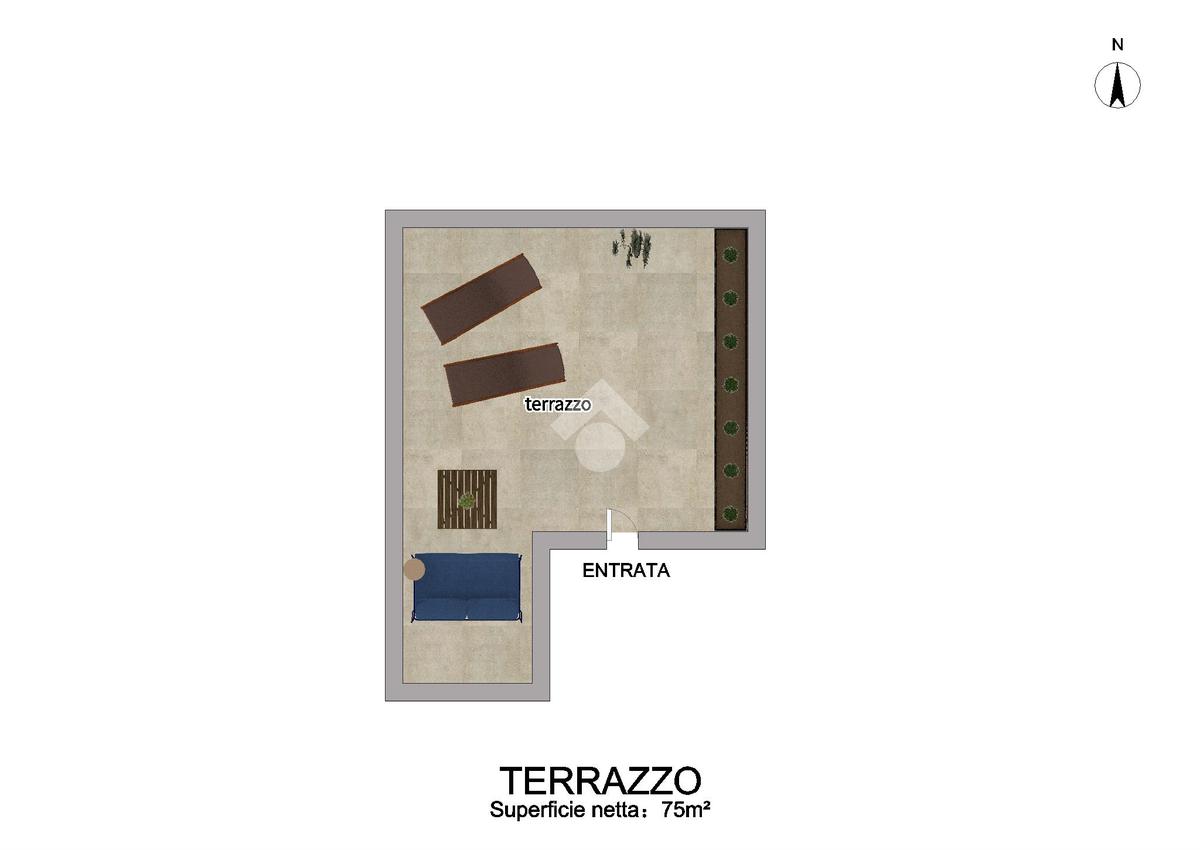 Inoltre dalla cassa scala si accede a un ampio terrazzo di copertura di 75 mq. Questa area esterna rappresenta una splendida opportunità per creare un'oasi personale all'aperto, arredata secondo i propri gusti e necessità. Perfetto per serate estive e momenti di relax, il terrazzo è uno spazio versatile che si presta a numerose possibilità di utilizzo.